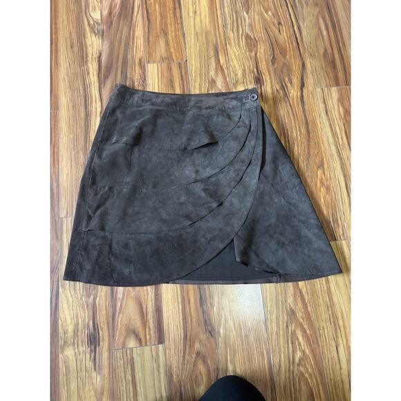 Kenar Brown Leather Layered Wrap Skirt Women’s Size 10 Western Festival. Measurements in photos.