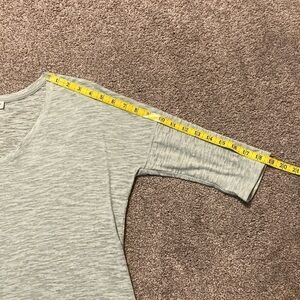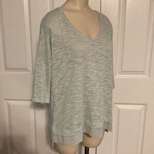 Kenar Burnout Layered Look Top in size L. Light green, 55% polyester, 45% cotton, v-neck, sheer layer at bottom hem with side slit. Great pre-owned condition. Please see photos for approximate measurements and details. From smoke free and pet free home.