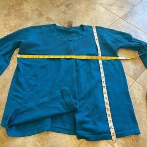 Kenar Elbow Bell Sleeve Scoop Neck Blue Cardigan Sweater Knit Medium Stretchy
