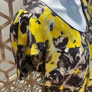 Brighten your wardrobe with this stylish floral top. Featuring a vibrant yellow and black pattern, it's perfect for any occasion.