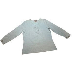 Kenar Medium Green Cashmere V-neck Blue Long Sleeve Cashmere Sweater 10d