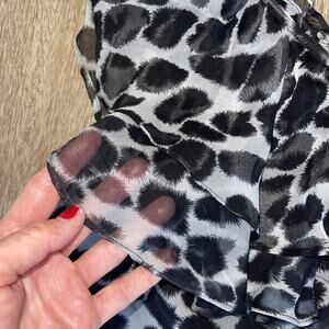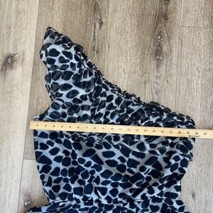 Kenar One Shoulder Black Silk Ruffle Blouse Sz L Animal Print Lined Exotic Flare