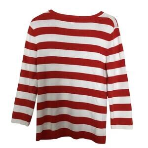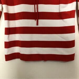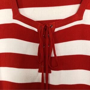 KENAR RED AND WHITE STRIPED SQUARE NECK 3/4 SLEEVE CORSET TIE KNIT SWEATER TOP