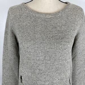 Kenar Scoopneck Pocket Sweater Heavy Knit Hi Low Cream Black Marled Womens Size Medium