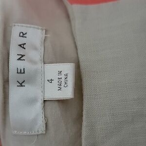 Kenar, Size 4, Coral and Natural Color 100% Linen Sheath Dress. Excellent Cond. Fun, Retro and Summery! This dress is good for any occasion! Fully Lined, Sleeveless, Side Zipper. Please refer to measurements in photos to ensure proper fit.