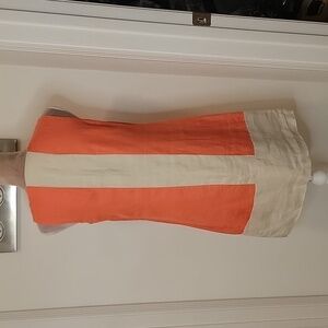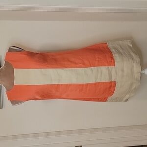 Kenar, Size 4, Coral and Natural Color 100% Linen Sheath Dress. Excellent Cond.