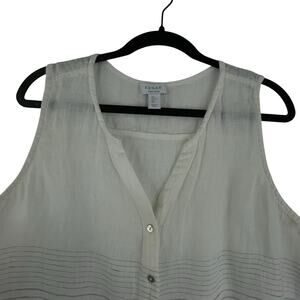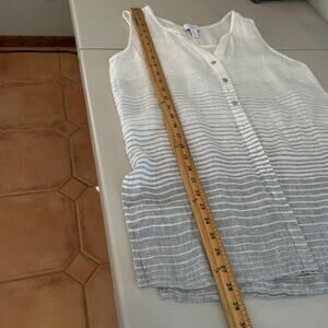 In good preowned condition. Semi-sheer, Mother of pearl buttons, sleeveless. See measurements in pictures. Minimalist, Preppy, coastal, neutral.