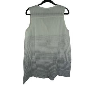 Kenar Striped Sleeveless Button Down Tunic Blouse 100% Linen Minimalist Large