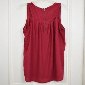 Kenar Tank Top Women Medium Cranberry Red Back Zipper Casual Layering Semi-Sheer