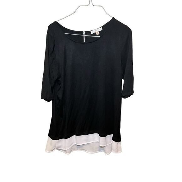 Kenar Top Women's Medium Black Rayon Stretch Round Neck Long Sleeve Back Zip.
