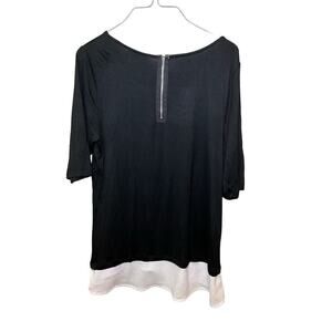 Kenar Top Women's Medium Black Rayon Stretch Round Neck Long Sleeve Back Zip