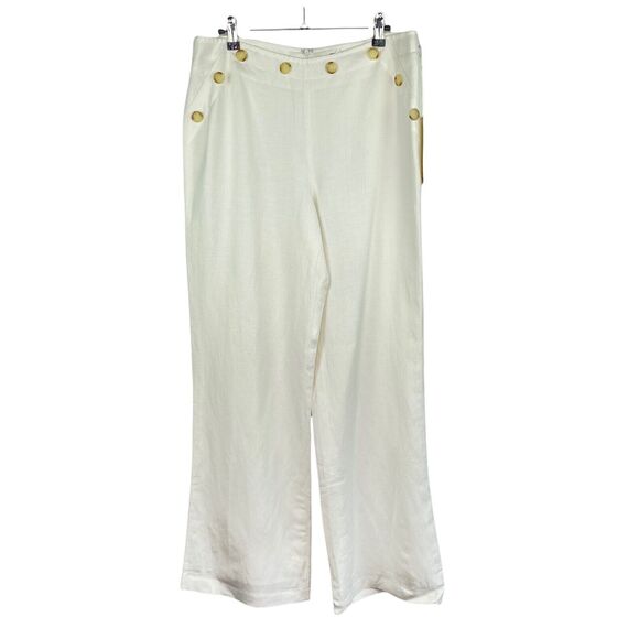 Kenar White Linen Blend Wide Leg Pants Women's Sz 10 New