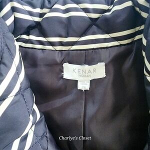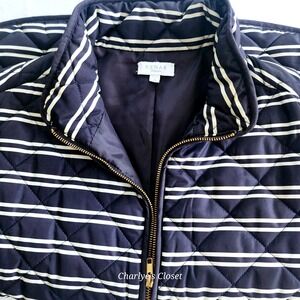 Kenar Woman Quilted Vest 2X Navy Striped Gold Accent Transitional Fall Outerwear