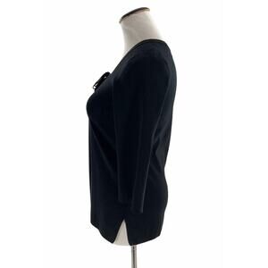 Kenar Womens Knit Blouse Black 3/4 Sleeve Lace Up V Neck Top Size Medium