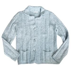 Kenar Women’s Sz XL Gray Angora Cardigan Sweater Cable Knit Button Front