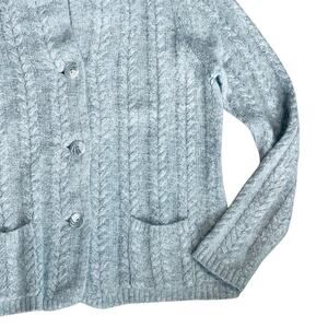 Kenar Women’s Sz XL Pale Gray Angora Button Front Cable Knit Cardigan Sweater. Excellent condition.