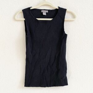 Kenar Womens Top Black Ribbed Large Sleeveless Scoop Neck Knit Silk Blend Tank