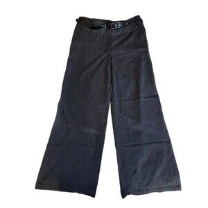 Brand: Kenar. Occasion: Casual. Size Type: Regular. Size (Women's): 8. Material: 62% polyester 35% rayon 3% spandex. Style: L967. Color: Black. Features: Front pockets. Back button closure pockets. Belt loops. Wide leg. 3 hook and bar, zipper, and hidden button (missing but can be replaced by the buyer) closure. Black belt is included.