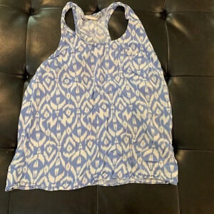 Kenar sleeveless blue tank top/crop top/blouse in a boho style with geometric design. Pre-owned good condition- no holes or stains - zoom pics for condition. Pics 3,4,5 actual item and best show true color.