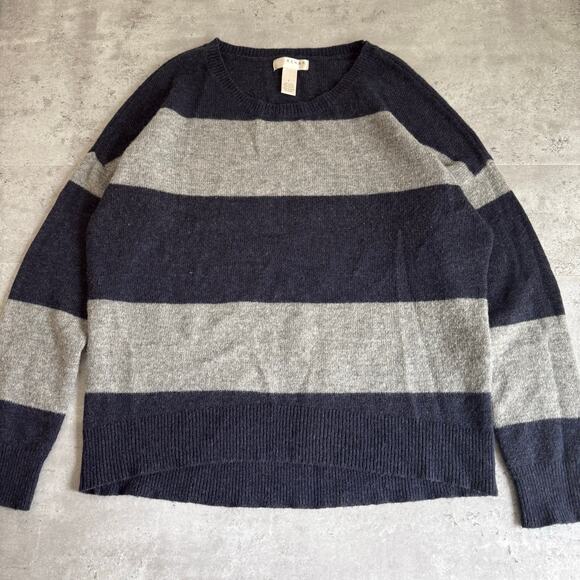 Kenar navy blue gray striped wool crewneck sweater Size Large