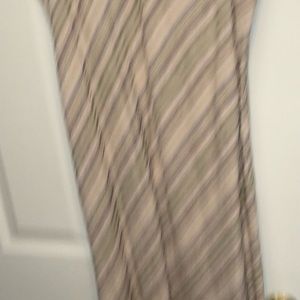 Kenar size 12 tan & ivory stripe 100% linen V neck maxi Bias cut