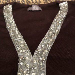 Kenar size XL brown stretch ribbed V- neck tank with silver sequin neckline
