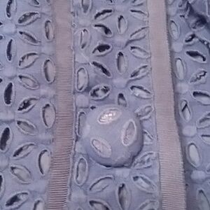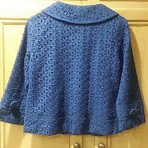 Kenar size small royal blue eyelet jacket blazer. Excellent used condition. Smoke-free pet friendly home. Approximate measurements sleeve 17 inches, top of shoulder to bottom hem 19 in, pit to pit 17.5 in. Blazer jacket eyelet royal blue size small Kenar