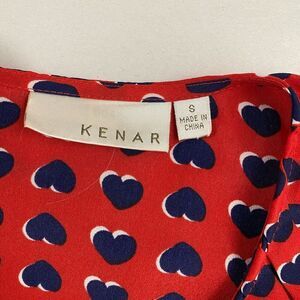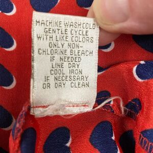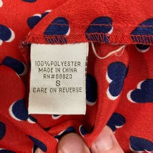 EUC. Red blouse with blue/white hearts pattern. Pleated chest. Tie keyhole back. 💯 polyester. Size small. Flat lay measurements are approximate. Use them as a guide for your best fit. Chest 18”. Length 24”.