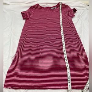 Kenar short sleeve pink and white striped shirt dress gold buttons back closure size L excellent used condition