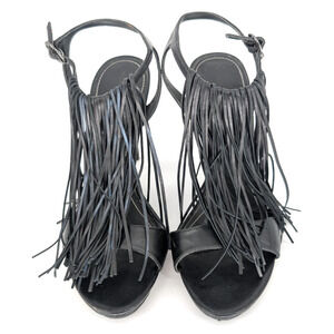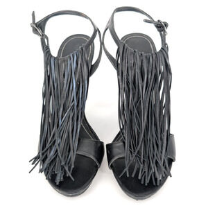 Kendall + Kyle Womens KK Aries Black Fringe Stiletto Sandals 8M Moto Boho Glam