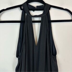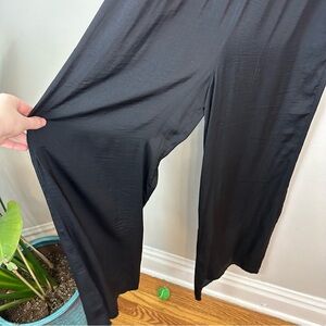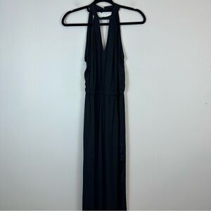 Excellent condition black satin jumpsuit. Halter neck, button closure in the back of the neck.
