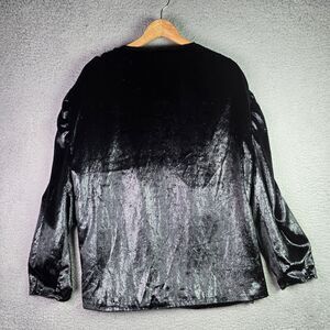 Make any moment memorable in this Kendall & Kylie black sparkle velvet jacket! The lush, metallic velvet catches the light for instant wow-factor, while the soft, draped fit with softly ruched shoulder seams feels both chic and comfortable. Perfect for layering over favorite tops or dresses, whether for holiday parties or everyday glamour. New with tags, flawless and fresh—this size 14–16 is especially hard to find and truly inclusive. Pair with jeans or a sleek skirt for unstoppable style. No flaws; pristine.