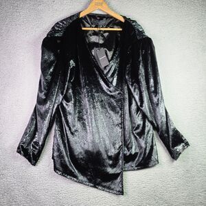 Kendall Kylie Black Sparkle Velvet Ruched Shoulders Party Jacket Size 14 16 NWT