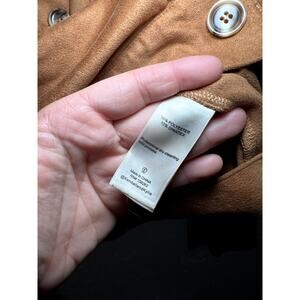 Stylish brown suede jacket with button closure. Features two front pockets. Perfect for casual wear. Great with jeans or a skirt.