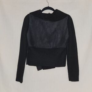 Kendall & Kylie Stylish black jacket with sleek zipper accents. Faux suede body, knit arms. warm fuzzy inside. Perfect for layering.