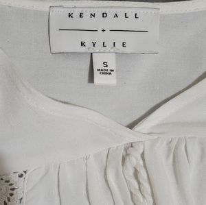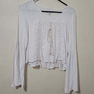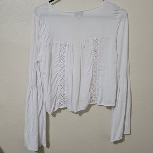 Kendall & Kylie Crop Crochet Bell Sleeve White Top Size Small 100% Rayon