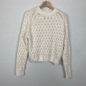 Kendall + Kylie Cropped Open Knit Loose Weave Cream Crew Neck Sweater