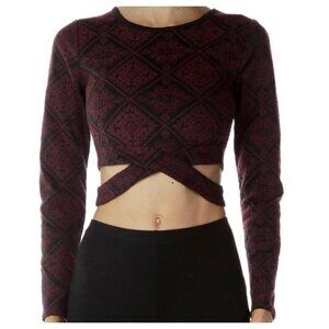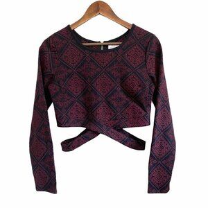 Kendall + Kylie Damask Embroidered Crisscross Straps Long Sleeve Crop Top