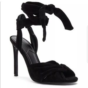 Kendall + Kylie Delilah Black Suede Ankle-Wrap Heel Sandals 7.5
