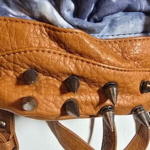 Kendall & Kylie Denim Vegan Leather Backpack With Pointed Studs Chambray Bag