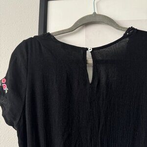 Kendall & Kylie | EUC Black Floral Embroidered Short Sleeve V-Neck Romper Small