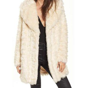 Kendall & Kylie Faux Fur Shawl Collar Coat Ivory