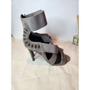 Keywords: Kendall + Kylie, heels, sandals, gladiator, strappy, studded, taupe, suede, ankle strap, dress shoes, party heels, women's shoes, size 8M