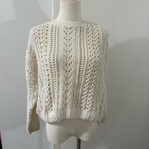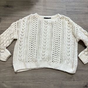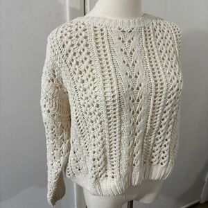 Kendall + Kylie Ivory Chunky Open Knit Pullover Soft Sweater Sz S Classic Preppy