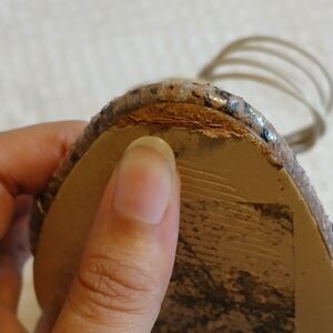 The shoes appear worn. The left shoes zipper is difficult to zip and may need fixing. The black insole of the right shoe has a small tear. Some of the elastic bands have stains. The bottom of the shoes appear very worn. Please view the photos. Thank you!