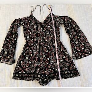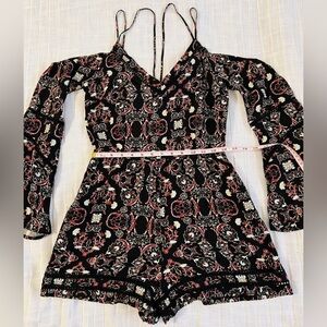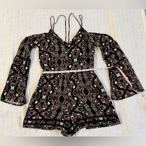 Kendall + Kylie Multi Floral Long Sleeve Romper Black Boho Bohemian Hippie Sz S