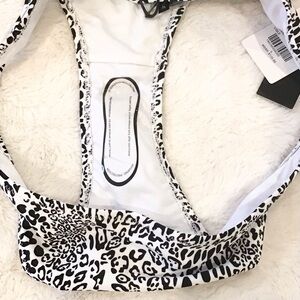 Kendall & Kylie NWT Bikini, Animal Print, Bandeau Top All-Time High Waist Swimsuit Size Large Two Piece. White & Black, Built-in cups. New With Tags. A very pretty bikini in a trendy all-over animal print.
