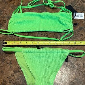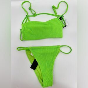 Kendall + Kylie Neon Lime Green Bandeau Strappy Swimsuit Bikini Set Sz L