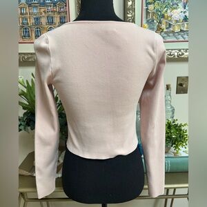 Kendall & Kylie Pastel Pink Fitted Ribbed Long Sleeve Crop Top Blouse Sz M