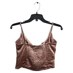 Chic pink blouse with ruffle detail. Spaghetti straps. Perfect for casual outings. "Worn only a few times, still in excellent condition."